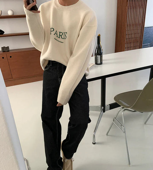 RT No. 4340 KNITTED PARIS LETTERED SWEATER